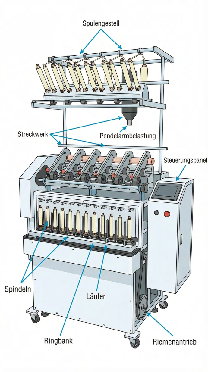 - 3-Walzen-Streckwerk Präzise Verzugssteuerung für gleichmäßige Garne